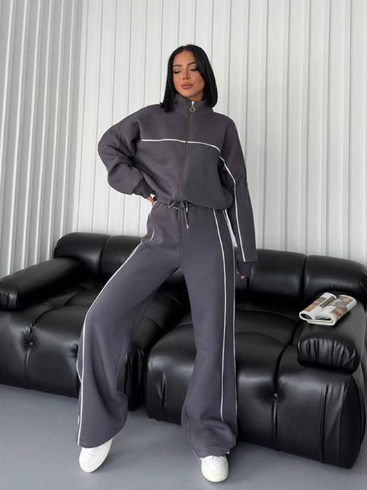 Women's Suit Long Sleeve Half Turtleneck Cardigan Trousers