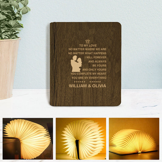 To My Love Custom Folding Book Lamp Wood Engraved Light