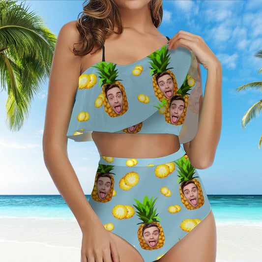 Custom Face Swimsuit Women's Ruffle Summer High Waisted Bikini Gift For Women - Pineapple