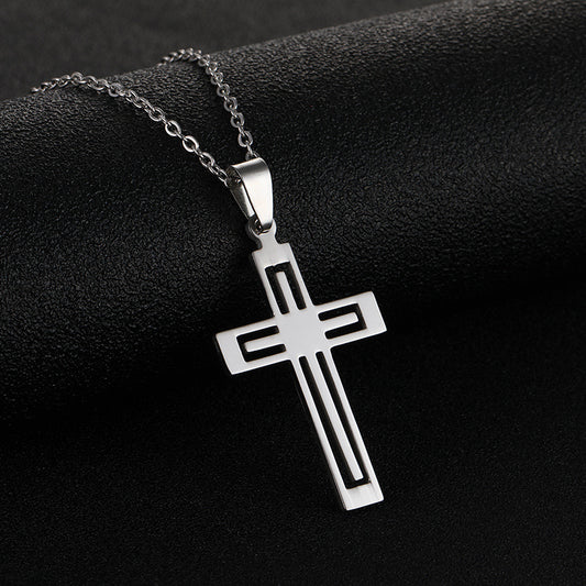 Stainless Steel Cross Necklace For Men Women Pendant Jewelry Fashion Fall Winter Sweater Necklace