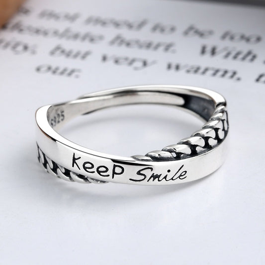 S925 Sterling Silver English Letters Cross Drip Ring Fashion Personality Ins Korean Version Finger Ring