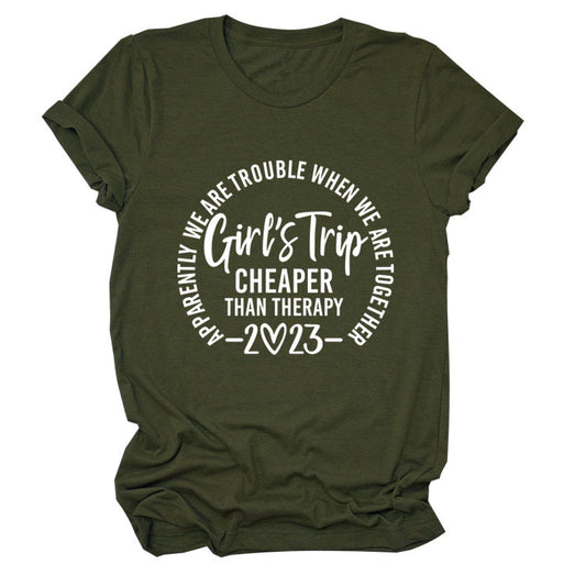 Letter Crew Neck Short Sleeve Loose Women's T-shirt