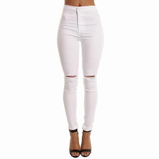 Skinny Jeans Women Denim Pants Holes Destroyed Knee Pencil Pants Casual Trousers Black White Stretch Ripped Jeans