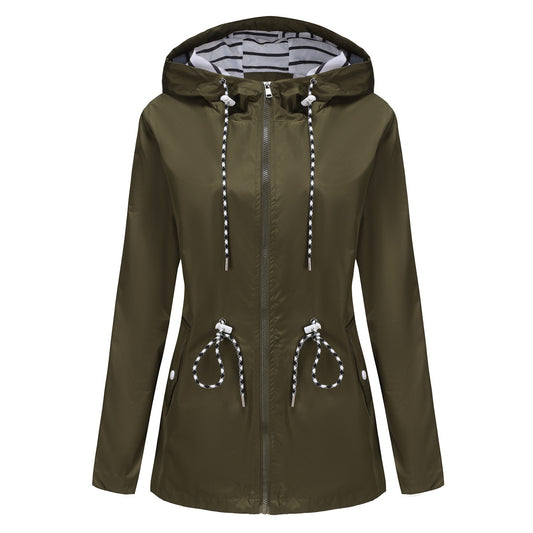 Long Sleeved Splashproof Mid Length Windbreaker For Women's Hooded Raincoat