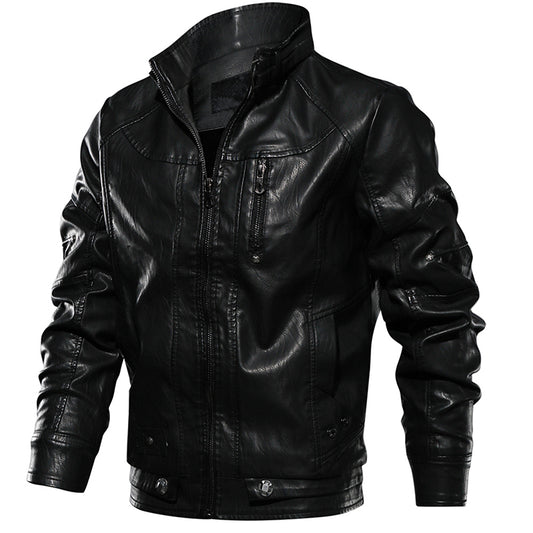 Men PU Leather Jacket Thick Motorcycle Leather Jacket Fashion Vintage Fit Coat