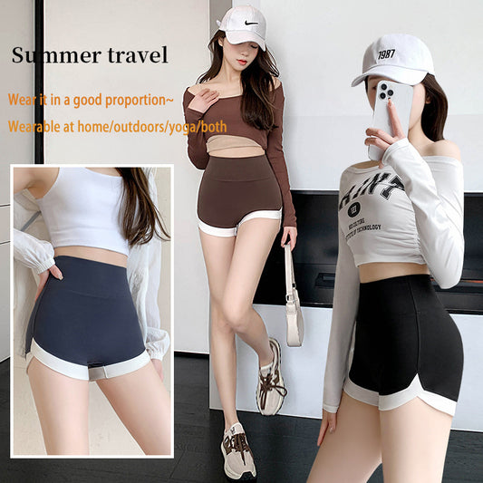 Triple Shark Pants Womens Panel Color Contrast Summer High Waist Tight No Awkwardness Line Yoga Fitness Pants
