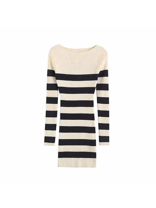 TRAF Women Knitted Dress Fashion Striped Slim Fitting Mini Dress Vintage O-Neck Long Sleeves Female elegant chic women dresses