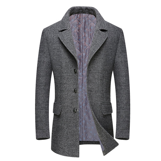 Winter Thick Men Wool Jackets Scarf Detachable Collar Fit Men Overcoats