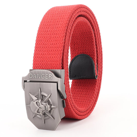 Skull Alloy Thickened Canvas Belt Lengthened Automatic Buckle