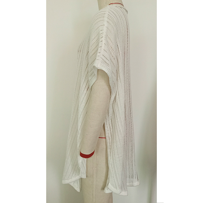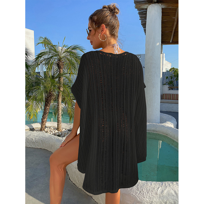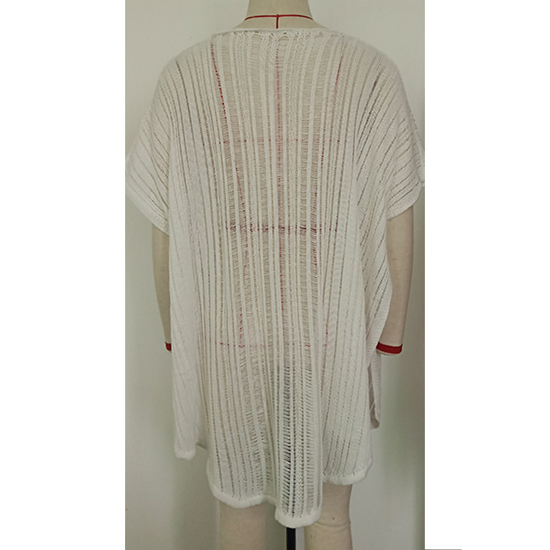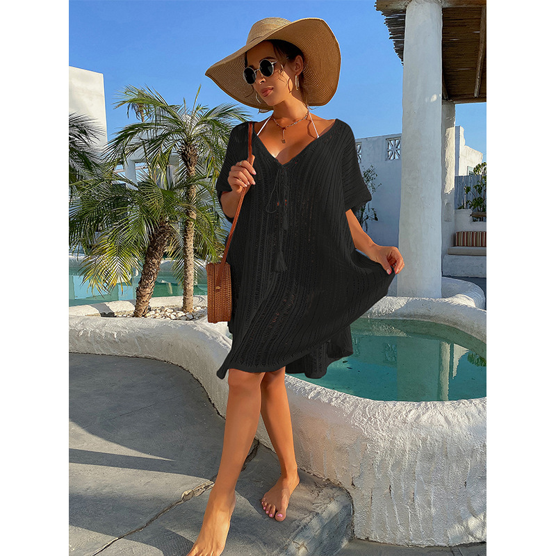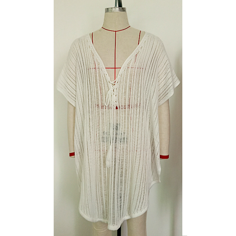 Summer vacation cutout sexy loose pullover tassel strap bikini sunscreen knitted beach blouse